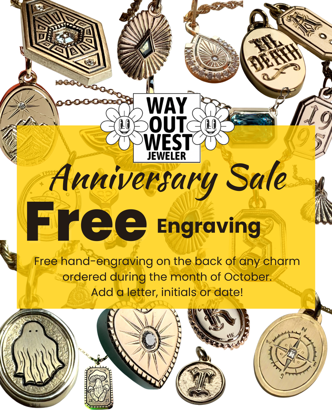At Way Out West Jeweler, everything we create is made by hand from start to finish. From the hand carved wax to casting, engraving and stone setting. In addition, we use recycled gold and ethically sourced stones for our work.