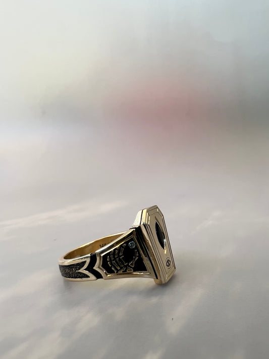 Custom Coffin-Shaped Signet Ring with Marquise Amethyst