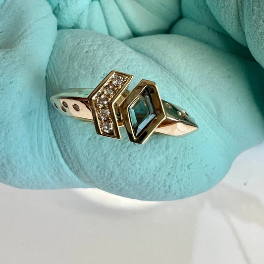 Minty Sapphire Bezel Split Shank Ring - 14k Gold