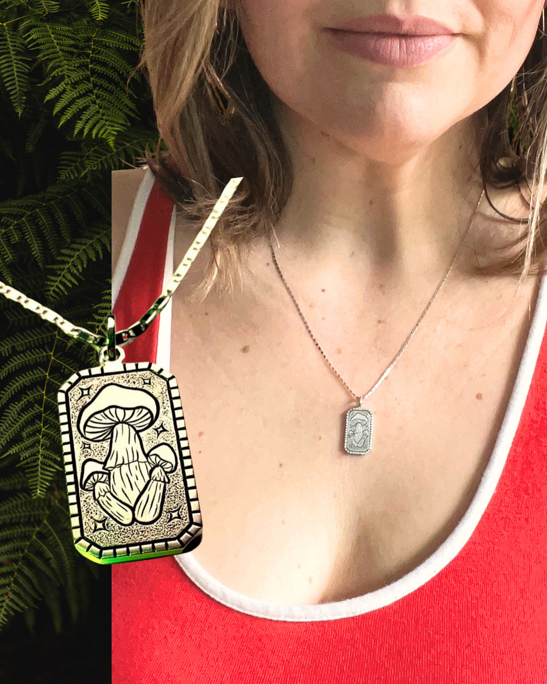 Fungi lovers, rejoice! Add some whimsy to your jewelry collection with our hand engraved Mushroom charm! Available in solid14k yellow or white gold, this charm is the perfect playful addition to any necklace or bracelet. *necklace sold separately