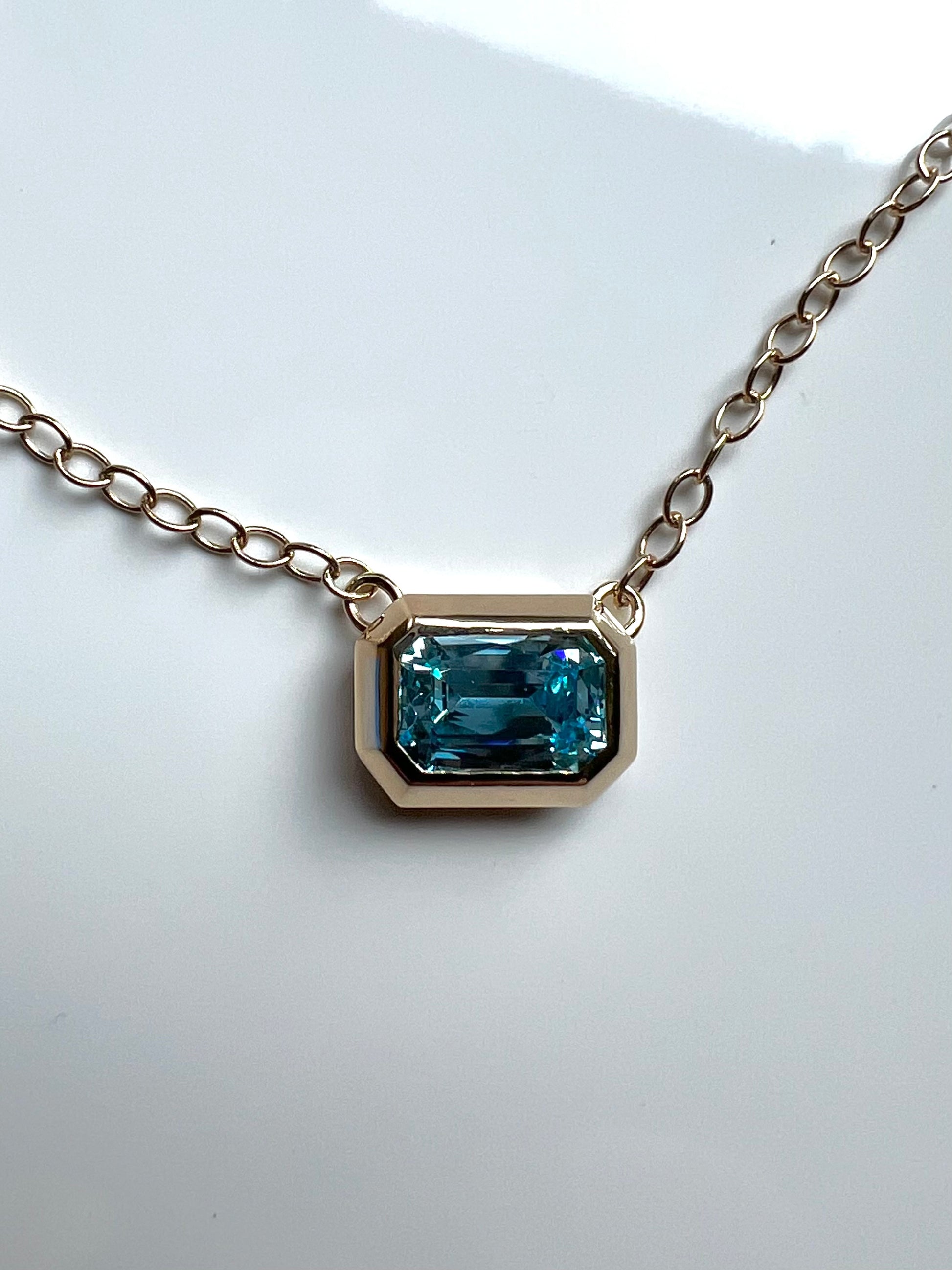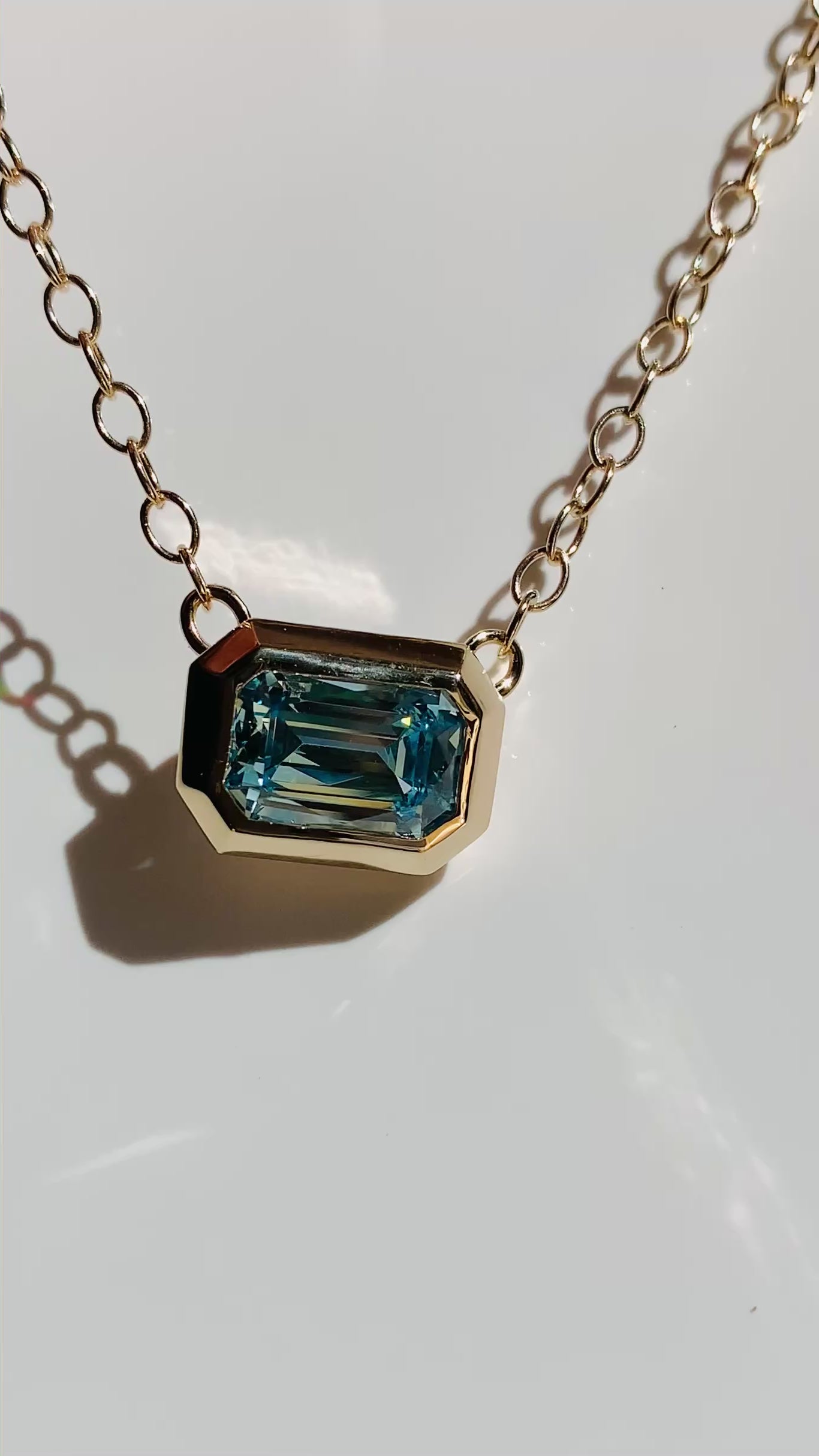 She wanted the bezel to be really wide and set in an east/west fashion, so I carved wax to fit the stone perfectly then cast in 14k yellow gold and added her necklace of choice to finish the look.